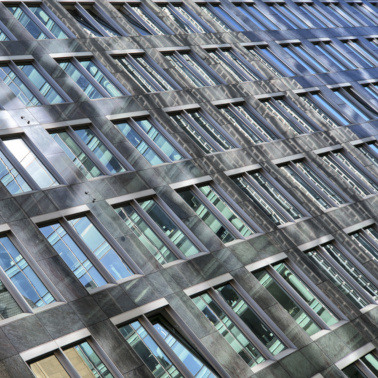 Fassade eines modernen Bürohochhauses in Frankfurt am Main, Deutschland